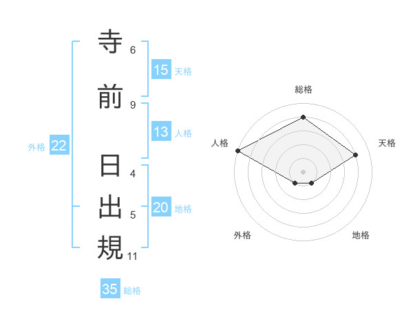 寺前 日出規さんを姓名の画数から五運を鑑定