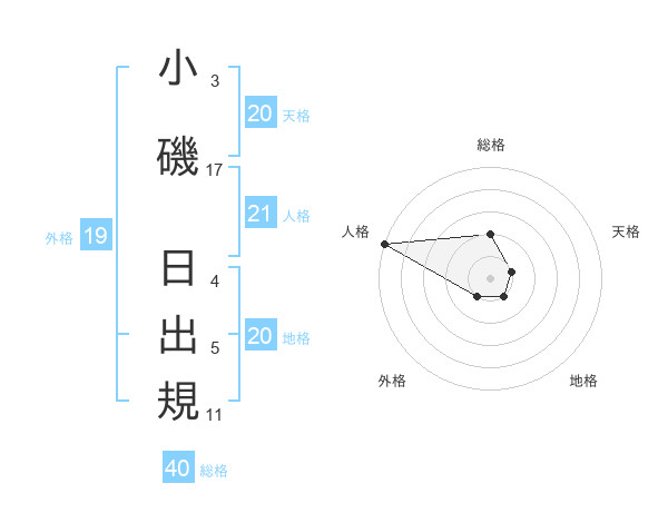 小磯 日出規さんを姓名の画数から五運を鑑定