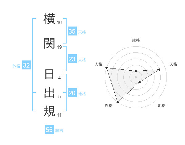 横関 日出規さんの総格は55画の1点!