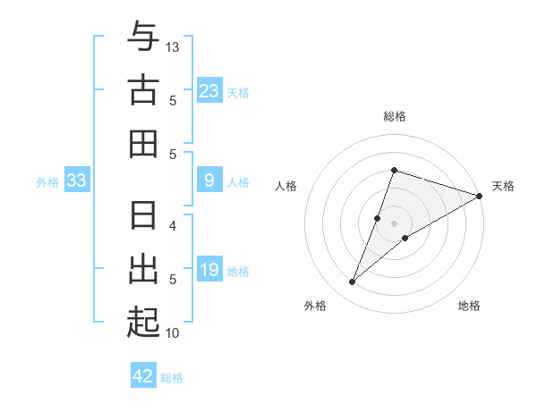 与古田 日出起さんの天格は23画の5点!