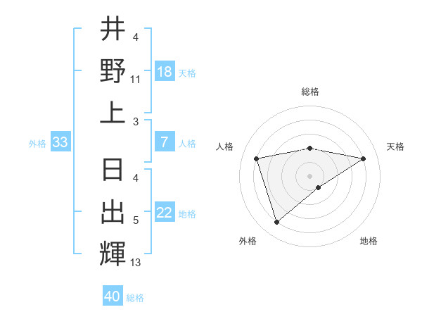 井野上 日出輝さんを姓名の画数から五運を鑑定