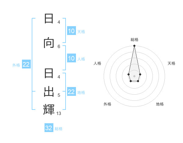 日向 日出輝さんを姓名の画数から五運を鑑定