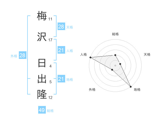 梅沢 日出隆さんを姓名の画数から五運を鑑定