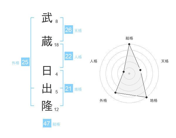 武蔵 日出隆さんを姓名の画数から五運を鑑定