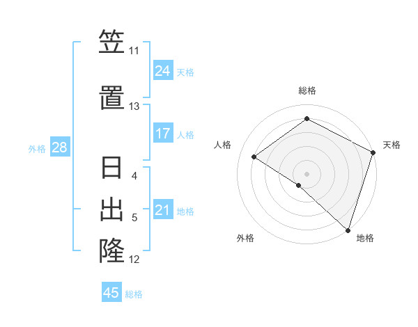 笠置 日出隆さんを姓名の画数から五運を鑑定