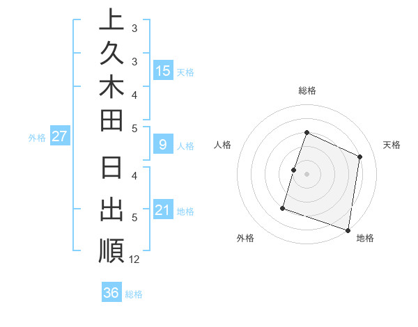 上久木田 日出順さんを姓名の画数から五運を鑑定