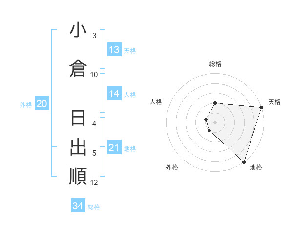 小倉 日出順さんの天格は13画の5点!