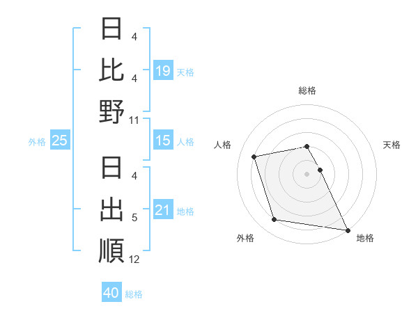 日比野 日出順さんを姓名の画数から五運を鑑定