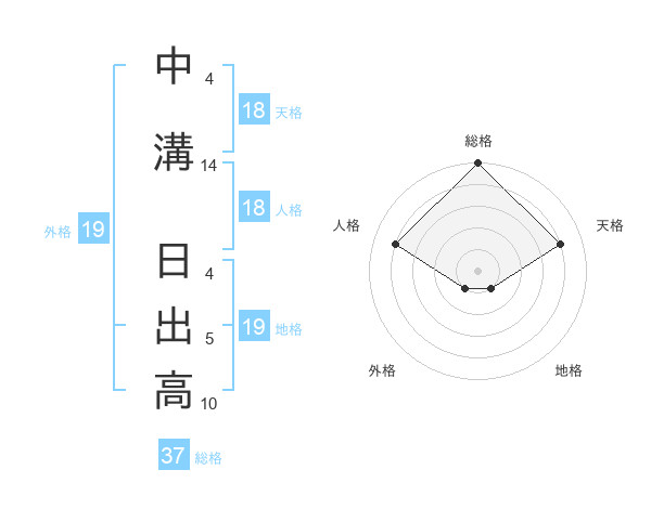中溝 日出高さんの総格は37画の5点!