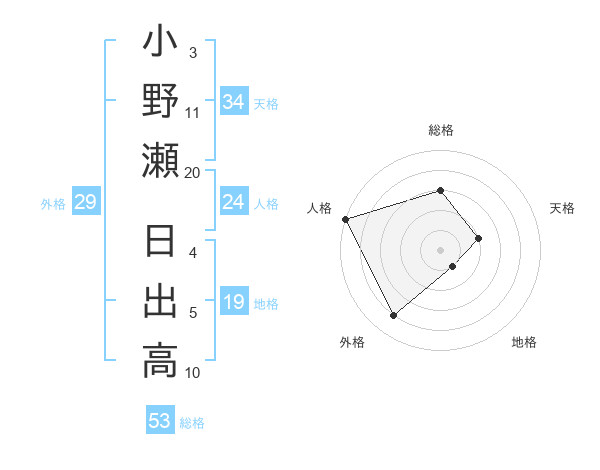 小野瀬 日出高さんを姓名の画数から五運を鑑定