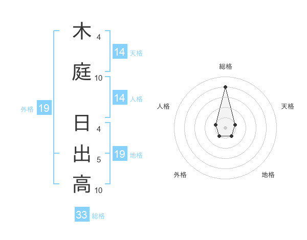 木庭 日出高さんの総格は33画の4点!