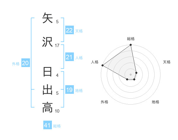 矢沢 日出高さんを姓名の画数から五運を鑑定
