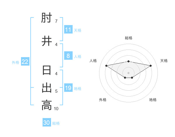 肘井 日出高さんの総格は30画の2点!