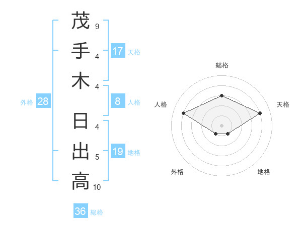 茂手木 日出高さんを姓名の画数から五運を鑑定