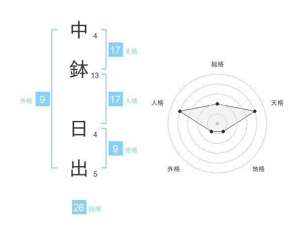 中鉢 日出さんの天格は17画の4点!
