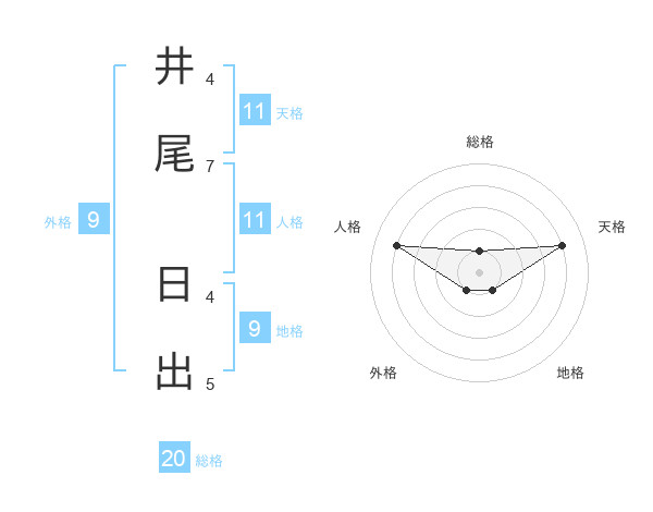 井尾 日出さんの天格は11画の4点!