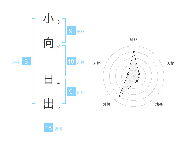 小向 日出さんの総格は18画の4点!