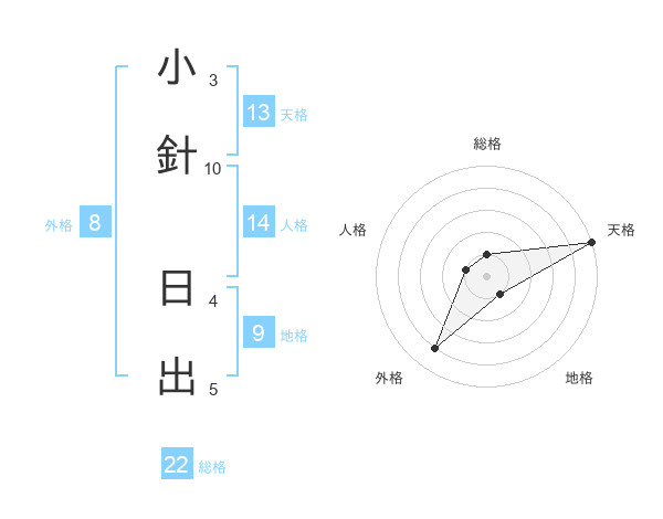 小針 日出さんの総格は22画の1点!