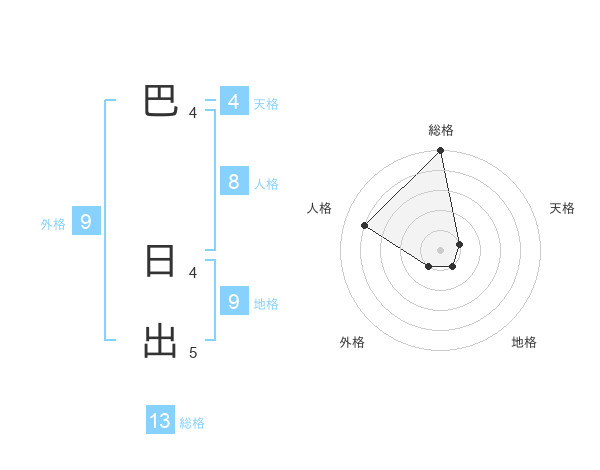 巴 日出さんの総格は13画の5点!