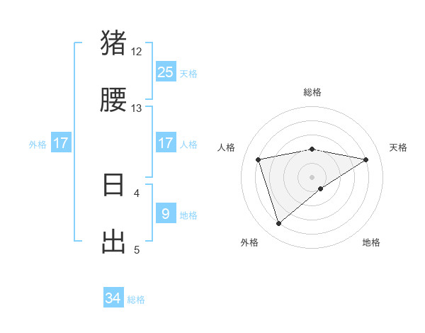 猪腰 日出さんの外格は17画の4点!