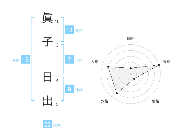眞子 日出さんの天格は13画の5点!