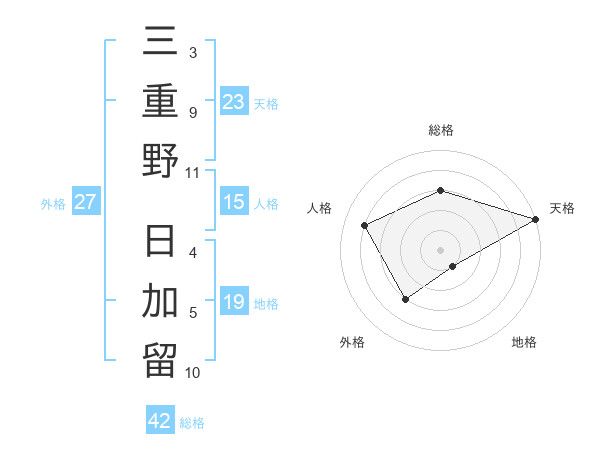 三重野 日加留さんを姓名の画数から五運を鑑定