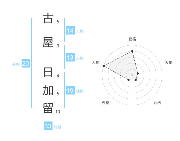 古屋 日加留さんを姓名の画数から五運を鑑定