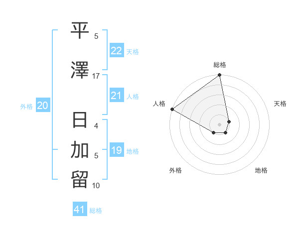 平澤 日加留さんを姓名の画数から五運を鑑定