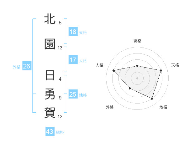 北園 日勇賀さんを姓名の画数から五運を鑑定