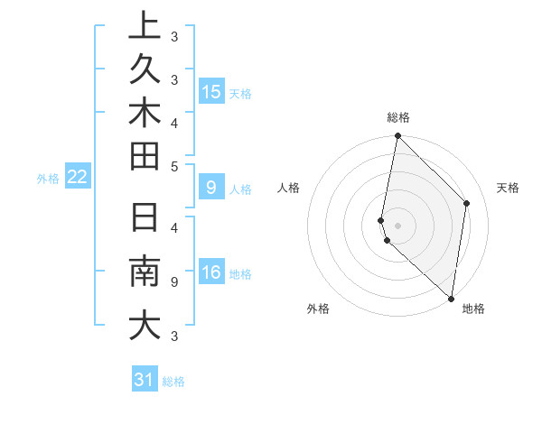 上久木田 日南大さんの総格は31画の5点!