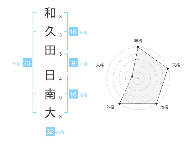 和久田 日南大さんを姓名の画数から五運を鑑定
