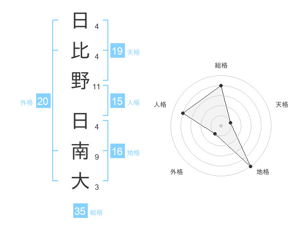 日比野 日南大さんを姓名の画数から五運を鑑定