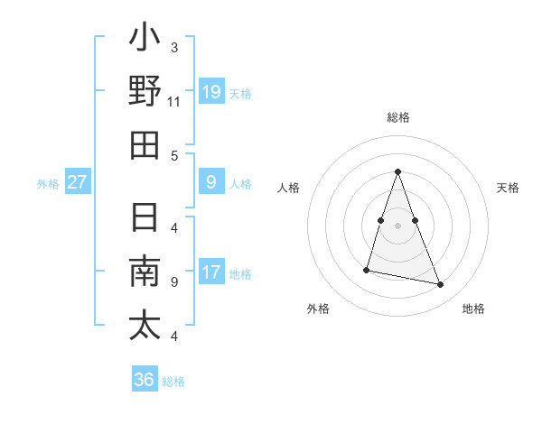 小野田 日南太さんを姓名の画数から五運を鑑定