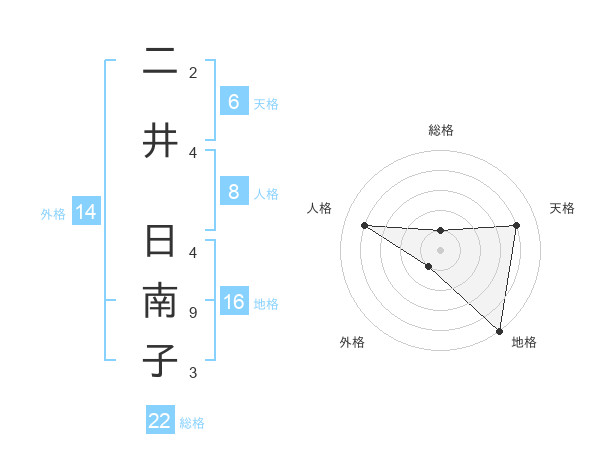 二井 日南子さんの総格は22画の1点!