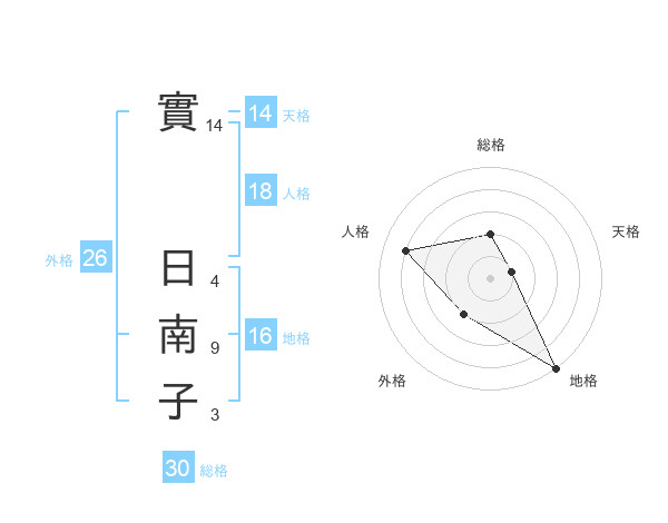 實 日南子さんの天格は14画の1点!