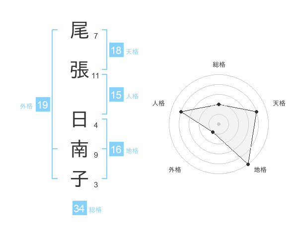 尾張 日南子さんの人格は15画の4点!