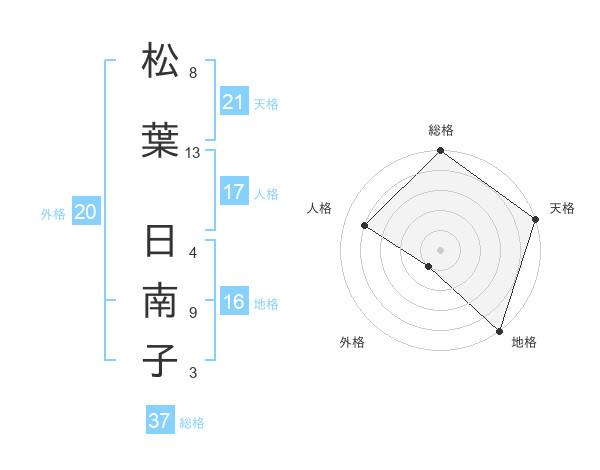 松葉 日南子さんを姓名の画数から五運を鑑定