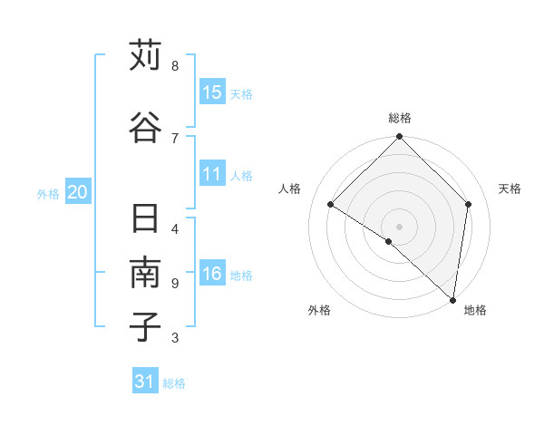 苅谷 日南子さんを姓名の画数から五運を鑑定