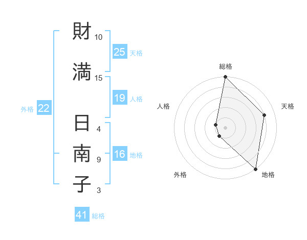 財満 日南子さんを姓名の画数から五運を鑑定