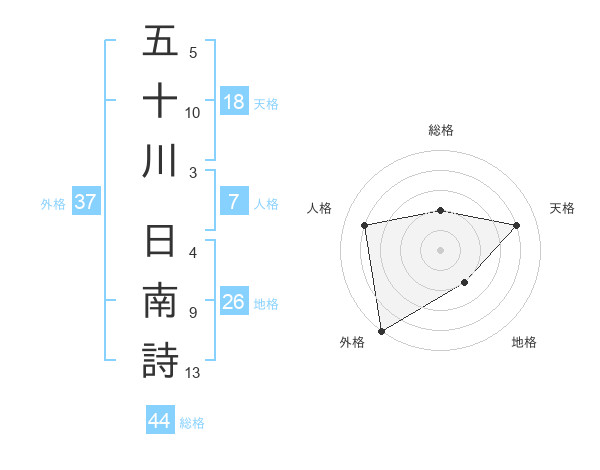五十川 日南詩さんを姓名の画数から五運を鑑定