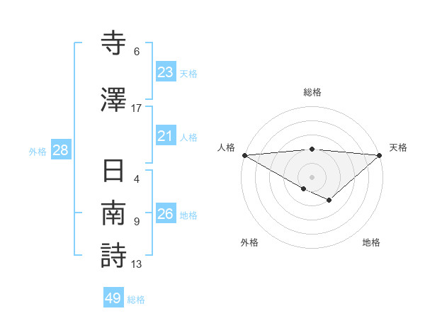 寺澤 日南詩さんを姓名の画数から五運を鑑定