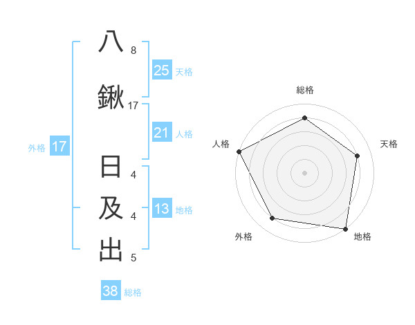 八鍬 日及出さんの総格は38画の4点!
