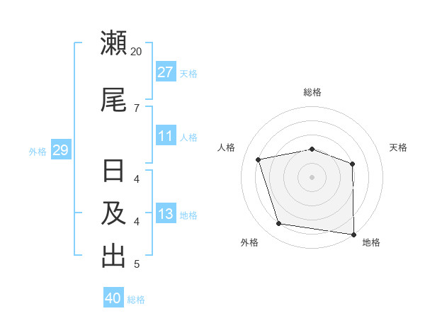 瀬尾 日及出さんの地格は13画の5点!