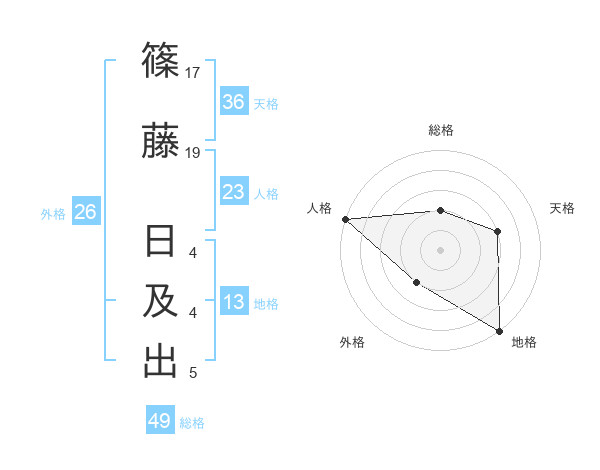 篠藤 日及出さんを姓名の画数から五運を鑑定