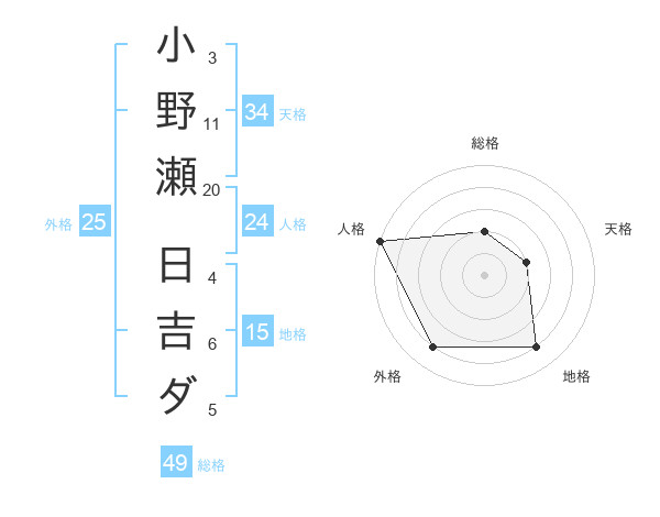 小野瀬 日吉ダさんの総格は49画の2点!