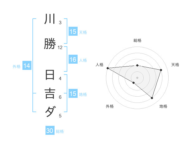川勝 日吉ダさんを姓名の画数から五運を鑑定