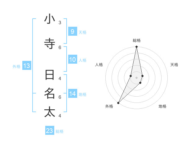 小寺 日名太さんを姓名の画数から五運を鑑定