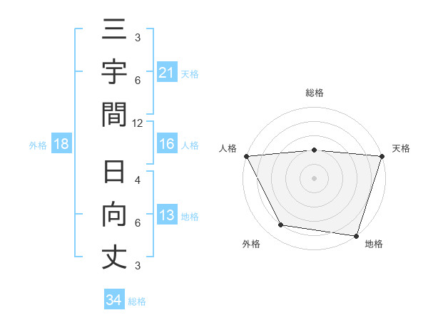 三宇間 日向丈さんを姓名の画数から五運を鑑定