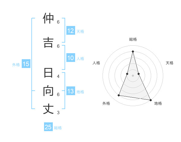 仲吉 日向丈さんの総格は25画の4点!