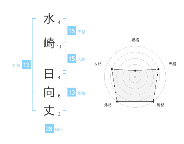 水崎 日向丈さんの外格は13画の5点!